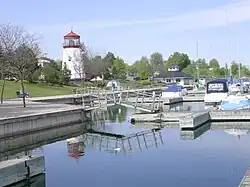Prescott was founded in the early 19th century by Edward Jessup, a Loyalist soldier during the American Revolution, who named the village after a former Governor-in-Chief, Robert Prescott. Before 1834, the town was a part of Augusta township; however, in that year, the town became a police village and severed its ties with Augusta.[2] The land here was ideal for settlement during the 18th and 19th centuries as it was situated between Montreal and Kingston along the St. Lawrence River at the head of the rapids.