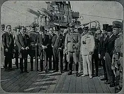 On 4 May, Bernardes and the entire ministry attended the golden jubilee of D. Arcoverde, the archbishop of Rio de Janeiro and first Brazilian cardinal — an unprecedented visit since the separation between the Catholic Church and the Brazilian State and a public exhibition of their rapprochement, which had already begun under the previous government.[141] Bernardes was personally distinguished by his Catholic religiosity, cemented by his secondary education at the Caraça School[142] — although, according to him, he was no longer a practicing Catholic in 1925, and only later resumed his religion.[143]