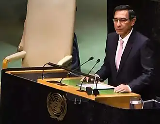 Finally, on September 24, 2019, Vizcarra addressed the 74th United Nations General Assembly, outlining his administration's proposal to advance elections as a measure to reinforce constitutional governance. He emphasized Peru's commitment to anti-corruption reforms and called for a global initiative to combat corruption