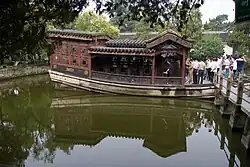 The Marble Boat is the oldest surviving structure in the Presidential Palace complex, which was built when Qianlong visited Jiangning (the former name of Nanjing). To please the emperor, the official told him that the name of the structure was called the "unmoored boat", as the metaphor of the firmness of the Qing dynasty's regime. The 14.5-meter-long timber-mimic stony boat is one of the best-known structures in the garden.
