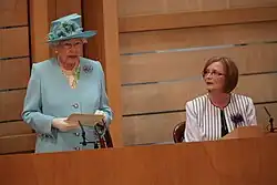 The presiding officer presides over the Parliament's debates, determining which members may speak, and maintains order during debate.[4] The presiding officer is expected to be strictly non-partisan, with some similarities in this respect to the tradition of the Speaker of the House of Commons. For this reason, they renounce all affiliation with their former political party for the duration of their term.[5] They do not take part in debate, or vote except to break ties. Even then, the convention is that when the presiding officer uses their tie-breaking vote, they do so in favour of advancing debate, but on final ballots, retaining the status quo. The presiding officer is also assisted in their duties by 2 deputies. They have the same powers as the presiding officer; they keep their party affiliation but remain impartial when presiding.