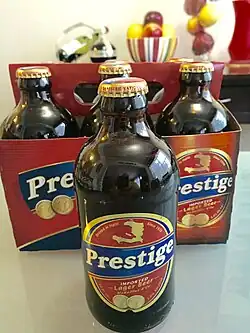 Prestige is a lager brewed by Brasserie Nationale d'Haïti (BRANA) in Port-au-Prince, Haiti. It is widely consumed and is the best-selling beer in Haiti with a 98% market share.[1] Prestige beer is available in some parts of the United States[2] and other countries. In 2011, Heineken publicly announced it acquired a controlling interest in BRANA by increasing its ownership from 22.5% to 95%[3][4]