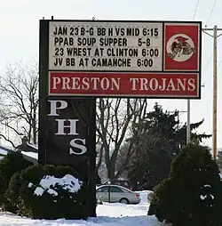 2. ^ a b Melvold, Sheri (May 28, 2012). "Report shows Preston, East Central merger makes economic sense". Quad City Times. Retrieved January 17, 2019.