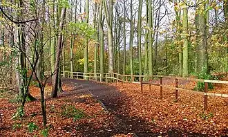 The Quarry Wood was declared a nature reserve in 2004. It is a former Victorian Quarry that has now been reclaimed by nature.[9] This is a popular place for younger mountain bikers, with the main attraction being "The Dippers". These are a series of dirt jumps and gravel corners created by the natural terrain. They are mostly fenced off in an attempt to protect the public from out-of-control bikes.