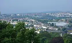Prestonville covers a sloping ridge of land on the western side of the valley through which London Road and the Brighton Main Line run. The land drops down steeply from Dyke Road, the ancient route to Devil's Dyke on the South Downs.[2] Now one of the city's major roads, it formed the historic boundary between the parishes of Hove and Preston. Later, when Preston became part of Brighton, Dyke Road formed the border between the Boroughs of Hove and Brighton.[3] The centre of Brighton is about 1.2 miles (2 km) to the southeast, and central Hove lies to the southwest.[2]