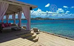Prickly Pear Island is an islet approx. 650 metres off the north shore coast of Hodges Bay on the much larger island of Antigua, West Indies.[1] The island measures approx. 50 metres north to south, and approx. 50 metres east to west. The small uninhabited island is home to the Prickly Pear Beach Club at Hodges Bay, a favorite day-time escape for the celebrity elite.[2][3][4]