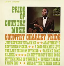 Pride of Country Music is the second studio album by American country music artist Charley Pride. It was released in 1967 on the RCA Victor label (catalog no. LSP-3775). The album was awarded four-and-a-half stars from the web site AllMusic.[2] It debuted on Billboard magazine's country album chart on July 1, 1967, peaked at No. 33, and remained on the chart for 10 weeks.[3]