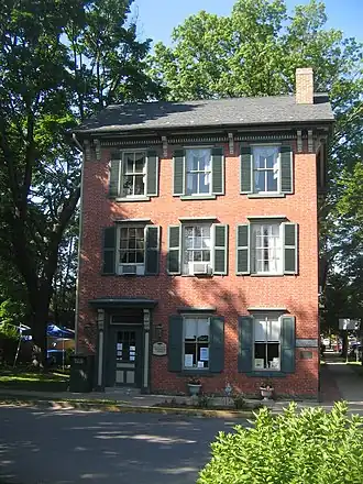 This historic library building was originally erected and operated as an inn in 1820. It was purchased circa 1880 by the theologian and scientist Joseph Priestley's great-grandson, Dr. Joseph Priestley, who used it as a home and medical office. It was converted into a public library circa 1925.[2]