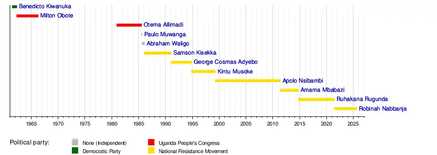 The post of prime minister was created for the first time in 1962. In 1966, Prime Minister Milton Obote suspended the Constitution, abolished the post of prime minister, and declared himself president. In 1980, the post of prime minister was re-established.