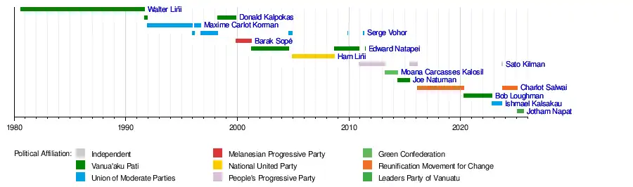 So far 13 men have served as Prime Minister of Vanuatu, some on multiple occasions.