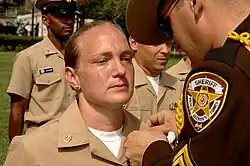 The sheriff is the chief law enforcement official of Prince George's County, per Maryland common law.[16] All deputy sheriffs are certified, sworn law enforcement officials with full power of arrest. All sworn members of the sheriff's office are agents of the U.S. state of Maryland and thus have authority throughout the entire state, although direct jurisdiction is limited to the Seventh Judicial Circuit of Maryland,[17] which includes Calvert County, Charles County, Prince George's County, and St. Mary's County.[18]