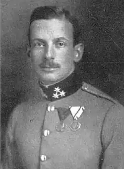 He was a member of the Austro-Hungarian Army and was killed in action in Warsaw on 16 August 1915 during the Russian Great Retreat. He is the highest member of the House of Liechtenstein to have been killed in action.[2]
