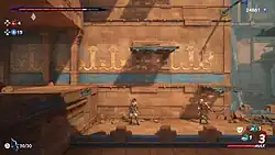 The Lost Crown features Metroidvania elements, as the game world is interconnected and filled with shortcuts and secret rooms, and players must solve puzzles to progress.[4][5] As players explore the game world, they can find Time crystals, which can be used to purchase upgrades for Sargon's weapons. While players may not immediately have the tools or skills to overcome an obstacle, they can return to it once they have the means to overcome it. Players can take screenshots and pin them to the game's map, allowing them to recognize and remember unsolved puzzles they have encountered.[3]