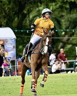 Azemah playing a charity polo exhibition match in 2024