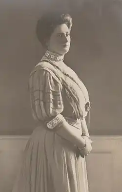 Princess Helena was engaged in 1908, and married Prince Harald of Denmark, fourth child and third son of Frederik VIII of Denmark and his wife, Princess Louise of Sweden and Norway on 28 April 1909 at Glücksburg, Schleswig-Holstein, Germany.[1] After their marriage, Prince Harald and Princess Helena lived at the Jægersborghus country house north of Copenhagen which Prince Harald had purchased in 1907. Their five children were born between 1910 and 1923.[2]