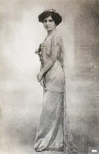 A fourth aunt, Queen Elena of Italy, invited her for a visit and introduced her to Prince John Constantinovich of Russia. He proposed marriage soon after. It was a love match, a surprise to the family because the gentle, introverted John had thought of becoming a Russian Orthodox monk.[3] "Perhaps you know that Ioanchik is engaged to Helene of Serbia, it is so touching," wrote his distant cousin, 14-year-old Grand Duchess Tatiana Nikolaevna of Russia, to her aunt, Grand Duchess Olga Alexandrovna of Russia, on 14 July 1911. "How funny if they might have children, can they be kissing him? What foul, fie!"[4] The couple married on 3 September 1911, at the Saints Peter and Paul Chapel of the Peterhof Palace in Saint Petersburg. After the marriage, she retained her style of Royal Highness, which meant that she had the right to receive diplomats in her own right, unlike her husband, who held only the His Highness status, lower in rank than hers, due to being male-line great-grandson of an Emperor.[5]
