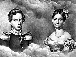 In 1828 she was betrothed to Gustav, former Crown Prince of Sweden, and the bride and groom evidently had true feelings for each other. But the son of a dethroned king caused a diplomatic row with the new Bernadotte king of Sweden and was not considered befitting, and the engagement was broken off in 1829.[2]