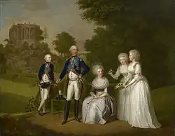 At birth, Wilhelmina Caroline had an elder sister, Princess Sophia Magdalena, and the family was joined by a son Crown Prince Christian in 1749 and another daughter, Princess Louise in 1750. In 1751, four years after Wilhelmina Caroline's birth, her mother Queen Louise died during her sixth pregnancy, just aged 27 years.[2] The following year, her father married Duchess Juliana Maria of Brunswick-Wolfenbüttel, who gave birth to Wilhelmina Caroline's half-brother, Prince Frederick in 1753.[3]