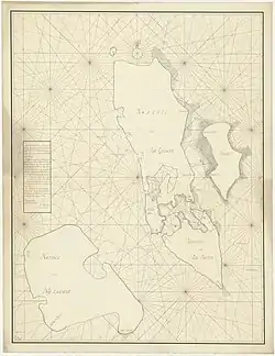 Prinsesse Louise was captained by Rasmus Alling in 1755–1758.[1] She set sail from Copenhagen on 10 January 1757, bound for Canton. Gregorius Frcik had mow been promoted to 2nd supercargo. The log book (30 December 1756 – 29 June 1758) was kept by master (styrmand) Niels Dixen.[3] The ship called at Nye-Shælland (Nicobar Islands) on the way. On 4 April 1757, Alling created a map of Camorta (Nye-Sjælland) and the surrounding islands.