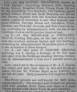 Sale notice for the Priory in 1870