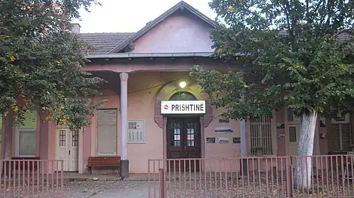 Pristina railway station[a] is the central railway station in the city of Pristina, the capital of Kosovo. It opened on Tirana Boulevard in 1936, having been constructed by a French/British company.[1] Trains calling at the station are operated by Trainkos sh.a.