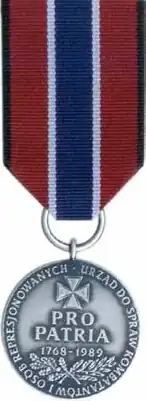 - ^ "Information on the "Pro Patria" Medal - Office for War Veterans and Victims of Oppression". Udskior.gov.pl. Office for War Veterans and Victims of Oppression. Retrieved 17 November 2012.