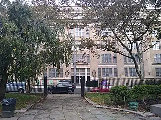 The Girls' Commercial High School, later to become Prospect Heights High School, was built in the 1920s. The school's exterior was designed to harmonize with the environment, while the interior was made to accommodate 3,500 students in fifty regular classrooms and other specialized laboratories and working rooms. Around 1947, it was renamed Prospect Heights High School as the curriculum encompassed college preparatory academic courses as well as those in fine arts and fashion along with the traditional commercial course. Later the all-girls high school became coeducational.[1] After many years of decline and falling academic levels, the school graduated its last class in June 2006 and was closed. The Prospect Heights building now houses four small high schools: the Brooklyn School for Music and Theater, Brooklyn Academy for Science and the Environment, International High School at Prospect Heights, and the High School for Global Citizenship.[2]