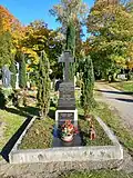The Evangelical Protestant Central Cemetery in Regensburg was inaugurated on November 2, 1898. It blends the elements of a rural cemetery in a landscaped park-like setting with a monumental Christian cemetery character. The new central cemetery was the successor to two older non-existent Protestant cemeteries, namely the Lazarus cemetery and St. Peter's cemetery, which were both located near the city wall. To establish a new cemetery catering to all Protestant parishes of Regensburg, the Evangelical Lutheran deanery set up a commission that included Julius Pöverlein and Christian Zinstag as architects and appointed Conrad Mayer as a landscape designer. Some additional requirements from the city had to be taken into account, because part of the cemetery land was to be used as a communal municipal cemetery under the control of the city administration in order to bury the non-religious citizens without any church affiliation and serve as a potter's field for found unidentified decedent as well as suicide burials. The mortuary and a prayer hall were built in the Neo-Renaissance style in 1898. Access to the cemetery is from the north via a three-arched portal designed by German Bestelmeyer, with the Biblical inscription “Your dead shall live” (Isaiah 26:19) above the central arch, topped by a large stone cross. The cemetery was consecrated on November 2, 1898 by Rudolf Woldemar Koch, the Lutheran provost General-Superintendent, and the first burial recorded on the cemetery grounds was Luise Hirschmann, the wife of the stonemason Gottfried Hirschmann, who was also involved in the design of the cemetery. In mid-July 1899, an approximately 10 meters long gigantic crucifix was placed on the cemetery ground which was created by the sculptor Anton Hess. The cemetery houses many ornate mausoleums and family chapels, including the impressive Dörnberg mausoleum, built between 1911 and 1914. The mausoleum is characterized by an exterior staircase flanked by resting lions and a high, steep-arched stone dome with shell limestone cladding based on the Byzantine architecture. Above the portal is the coat of arms of the Von Dörnberg family. In the interior, vaulted by a flat dome painted in Art Nouveau style, is the circular crypt with eight burial chambers. The room is decorated with mosaics and a large Caritas figure, as well as a bust of Ernst von Dörnberg.[1][2][3]