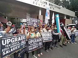 Numerous groups have protested outside Batasang Pambansa regarding the budget deliberations for 2023 fiscal year. ACT Teachers protested for higher teaching allowance.[45] Youth group Anakbayan protested against budget cuts.[46]