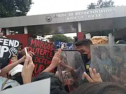 Efforts to revised or amend the constitution was also opposed with the Makabayan group organizing protest against it.[25][26] They argue that proposed economic changes by the Congress are a prelude to the introduction of political amendments including changes on term limits.[27]