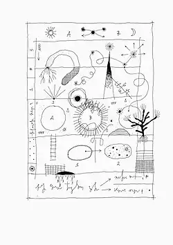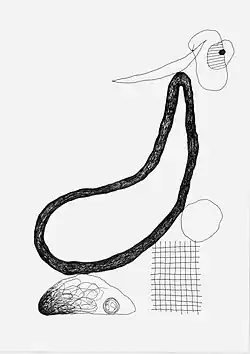 In 2014, Protey formulated Surritualism[14] as a new method. It is based on two inseparable parts: ritual, and the principle of surrealism to denude the absurdity of this or that action. In 2015 Temen decided not to use computer technologies in his works. His basic focus in 2016 was the representation of information and the practice of visual communication. Many images were inspired by book graphics inside scientific literature, including texts devoted to biology. The artist elaborated a system of image analysis based on a toolkit of frequently used representation models. Works of 2015-2016 are the beginning of the Inner School of Open Studies.[15] These works unite images representing “knowledge”, using popular educational guides, explanations on table-napkins and other presentational practices of exact and sensory sciences. “Via the plastic multiplication of these layers, Protey Temen fixes such routine processes as consideration, memory and thinking”.