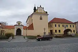 There are three churches in the municipal territory. The Church of Saint Elizabeth on the town square was built in 1662 in the early Baroque style. The Church of Saint Gall in Myšenec is from the end of the 11th century and after several reconstructions it still retains its Gothic character. The Church of Saint Wenceslaus in Krč was built in 1352.[4]