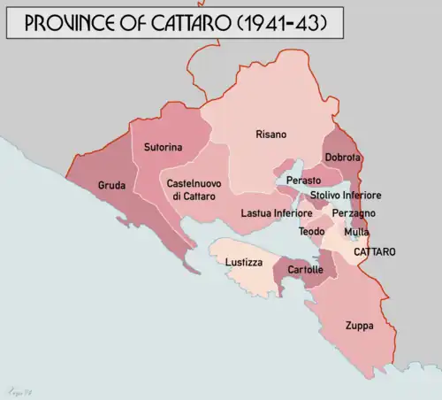 Province of Cattaro (Italian: Provincia di Cattaro) was a province of the Italian Governorate of Dalmatia, created in May 1941 during World War II (by the "Regio Decreto Legge del 18 maggio 1941"[1]). It lasted until September 1943.