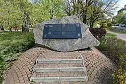 In 2000, at the intersection of Komisji Edukacji Narodowej Avenue and Jeżewskiego Street, within future park, was unveiled a monument dedicated to travel of Andrzej Ciołek of Żelechów to Spain in 1404. It has a form of a glacial erratic rock with a commemorative plaque. Originally, it read that Andrzej Ciołek went on a pilgrimage to Santiago de Compostela. However, while it remains a popular assumption, his travel remains too undocumented for his destination and motives to be known. As such, in 2024, the information on the plaque was changed to simply inform that he had traveled to Spain. It was founded by Pułtusk Academy of Humanities, to commemorate its assumption into the Compostela Group of Universities.[2][3]