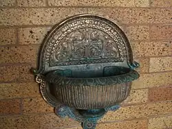 In the Catholic Church this psalm may be assigned by a priest to a penitent as a penance after Confession. Verse 7 of the psalm is traditionally sung as the priest sprinkles holy water over the congregation before Mass, in a rite known as the Asperges me, the first two words of the verse in Latin. For this, the priest uses an aspergillum, held in the right hand, while an acolyte holds a pail, also called aspersorium or situla.[18] This reference lends a striking significance to the Mass as sacrifice, given that hyssop was used for the smearing of blood on the lintels at the first Passover.