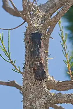 - ^ a b c Ewart, A. (2001). "Emergence patterns and densities of cicadas (Hemiptera: Cicadidae) near Caloundra, South-East Queensland". Australian Entomologist. 28 (3): 69–84.