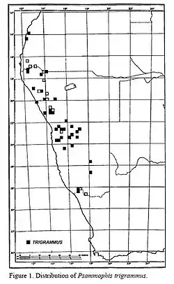 - Psammophis trigrammus (Günther, 1865) Geographical Distribution. African Herp News 79: 55-56.[2]