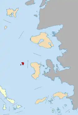 Psara (Greek: Ψαρά, Psará, [psaˈra]; known in ancient times as Ψύρα/Ψυρίη, Psyra/Psyriē) is a Greek island in the Aegean Sea. Together with the small island of Antipsara (population 4) it forms the municipality of Psara. It is part of the Chios regional unit, which is part of the North Aegean region. The only town of the island and seat of the municipality is also called Psara.[2]