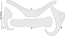 | Pseudorhabdosynochus sinediscus : female (left) and male (right) sclerotised organs | |