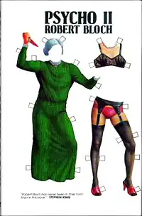 Psycho II is a 1982 horror novel by American writer Robert Bloch. It is a sequel to his 1959 novel Psycho. The novel was completed before the screenplay was written for the unrelated 1983 film Psycho II. According to Bloch, Universal Studios loathed the novel, which was intended to critique Hollywood Slasher films. A different story was created for the film and Bloch was not invited to any screenings.[1] Bloch declined Universal's suggestion that he abandon his novel and released it, achieving good sales.[2]