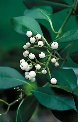 Psychotria coelospermum is a vine in the coffee family Rubiaceae found only in the Northern Territory and Queensland, Australia. It is a root climber with a slender stem and leaves arranged in opposite pairs, each measuring up to 14 cm (5.5 in) long by 7 cm (2.8 in) wide. Flowers are produced in panicles from October to December, followed by white fruits about 15 mm (0.6 in) diameter from February to June. It grows in swamps and very wet areas in rainforest. It was first described by the Queensland government botanist Frederick Manson Bailey in 1904.[4][5]