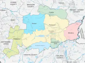 | Gmina Kobiór | rural | 49.5 | 4,890 | Kobiór |