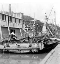 Ptarmigan was built at Golden, BC and was the last vessel built for the Upper Columbia Navig. & Tramway Co., of which Capt. Frank P. Armstrong was the principal owner and manager. Ptarmigan's engines were over 60 years old, and had been originally built for a ferry crossing the St. Lawrence River. The engines had been previously installed in two other sternwheelers on the upper Columbia River, specifically the first Duchess, and the second Duchess.[2] The blunt-ended bow of Ptarmigan allowed the vessel to be more capable of pushing barges, which increased the vessel's utility and effective cargo capacity.[1][3]