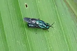 9. ^ James, M. T. (1948). "Flies of the family Stratiomyidae of the Solomon Islands". Proceedings of the United States National Museum. 98 (3228): 187–213. doi:10.5479/si.00963801.3228.187.