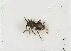 Ptinus sexpunctatus is a Palearctic spider beetle (Ptinidae: Ptininae) found throughout Europe.[1] In the United Kingdom it is categorised as 'Nationally Notable B' by the National Biodiversity Network and thus appears in between 31 and 100 hectads (10 km grid squares) across the country.[4] In 2007 it was first recorded as an invasive species in North America where it may have imported with introductions of Osmia cornuta and Osmia cornifrons.[1]
