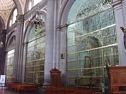 Among the sacred vessels, two gold ones stand out, as well as a monstrance, made by José Inzunza. An elegant tenebrio of 5 and a half meters high in ebony wood richly adorned with silver, the work of José Mariano Castillo.[14]