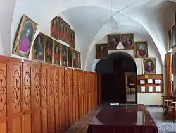 The last chapel next to the door of this nave has a Neoclassical style altarpiece, the side murals are covered with two paintings of the Passion, from the 17th century, The Descent and The Calvary, there is controversy about their authorship, on the one hand it is attributes it to the Spanish artist Rodrigo de la Piedra and on the other to Antonio de Santander.[8]