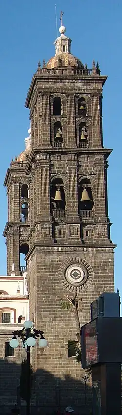 The Basilica Cathedral of Puebla, as the Cathedral of Our Lady of the Immaculate Conception is known according to its Marian invocation, is the episcopal see of the Archdiocese of Puebla de los Ángeles (Mexico). It is one of the most important buildings in the historic center of Puebla declared a World Heritage Site by UNESCO. It has the prerogative of being the first sumptuous temple that under fine architectural designs was built in the Americas, consecrated in 1649, ahead of the Metropolitan of Mexico that was dedicated in 1653. It was founded by Philip II of Spain.[1]