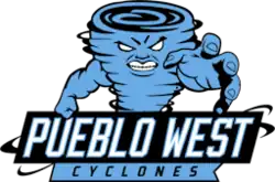 Pueblo West is a member of the Colorado High School Activities Association (CHSAA) and competes in the CSML Metro league. Their school colors are Carolina blue, black, and white, and their mascot is the cyclone.[5][6]