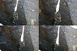 The site contains over 800 petroglyphs, incised on more than 100 boulders.[8] One of the petroglyphs which has been uncovered at the site appears to show the migration path from the Puerco Pueblo to the Crack-in-the-Rock site, today located within the Wupatki National Monument, dating from approximately 1150.[9]